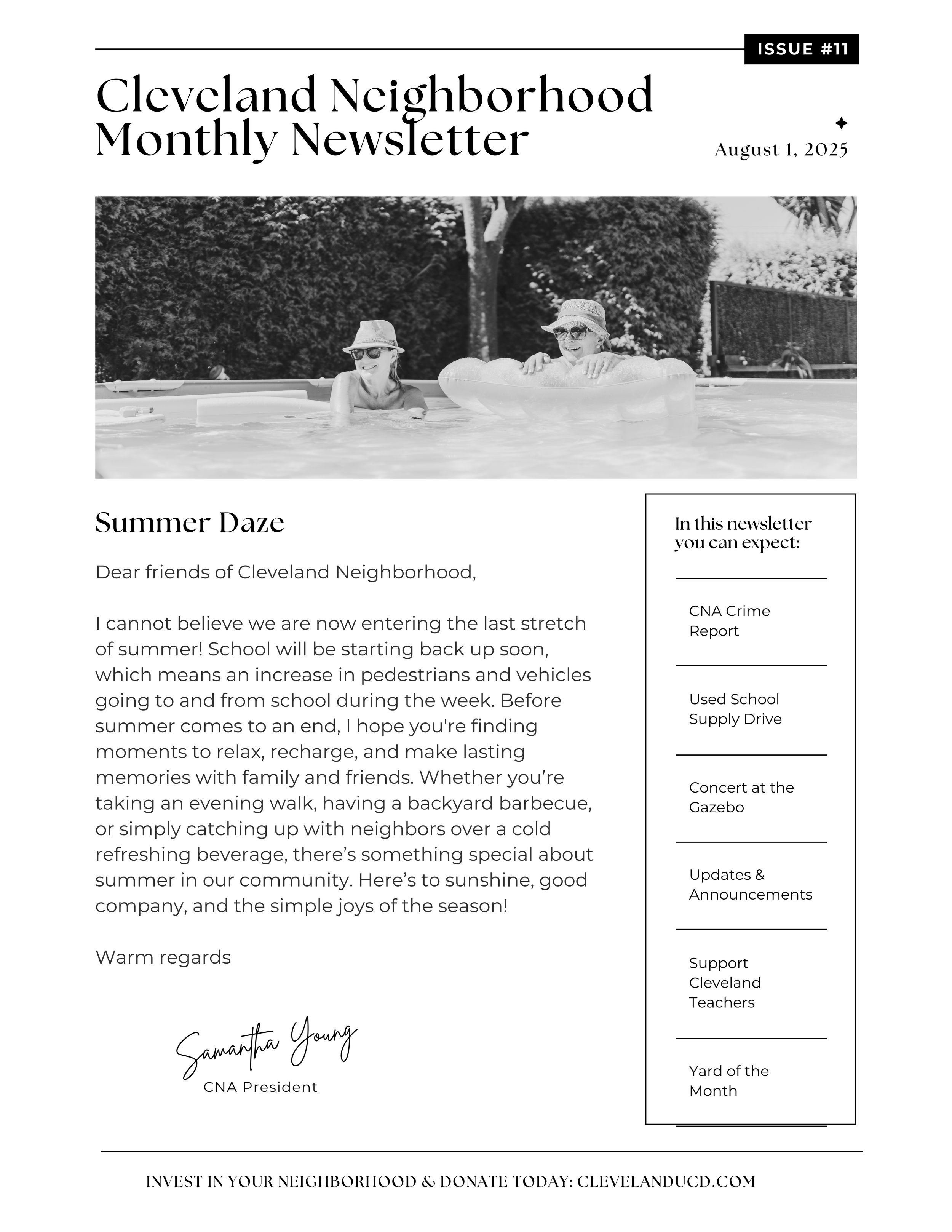August Cleveland Neighborhood Newsletter Jul 18 Written By Kirsten Holder Click to read Kirsten Holder